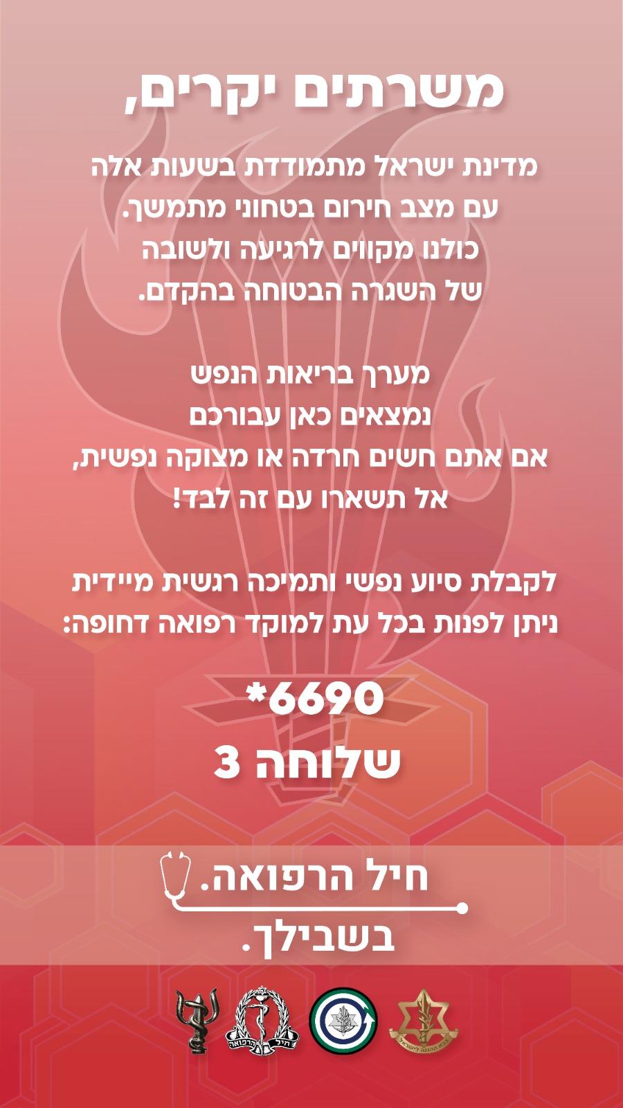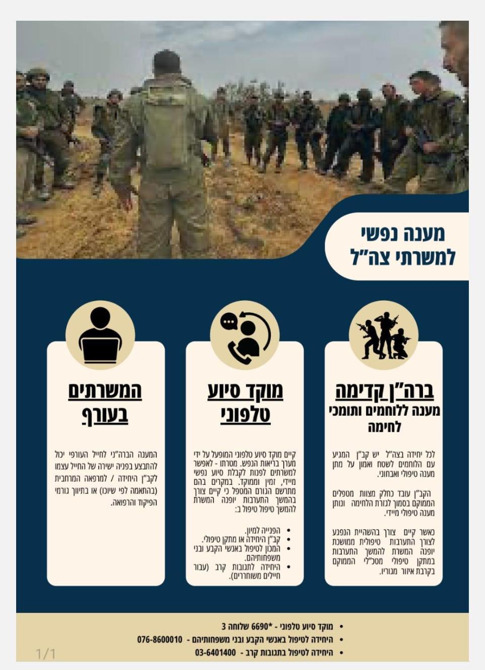 מתנדבות יקרות, במקרה של חיילים שמתקשרים בלחימה - חשוב שנזכור שמענה לא מדוייק יכול לעשות נזק ולכן חשוב מאד להפנות אותם לגורם שיוכל לתת להם את המענה המתאים. להלן הפניות אפשריות: