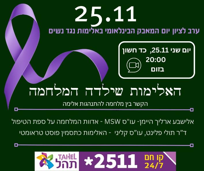 ביום המאבק הבינלאומי באלימות נגד נשים, תהל מרכז הסיוע מקדישה את השיח לנושא :